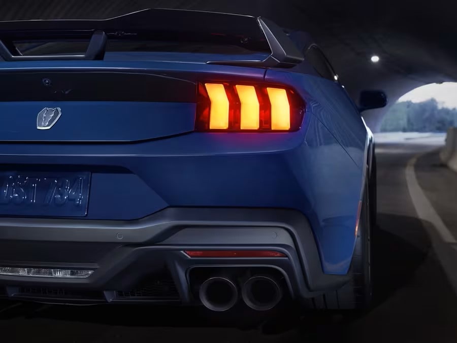 2025 Ford Mustang® coupes and convertibles feature a distinctive front end with instantly recognizable tri-bar LED headlamps. Plus, vibrant LED taillamps with sequential turn signals leave a lasting impression as you pull away from the pack.