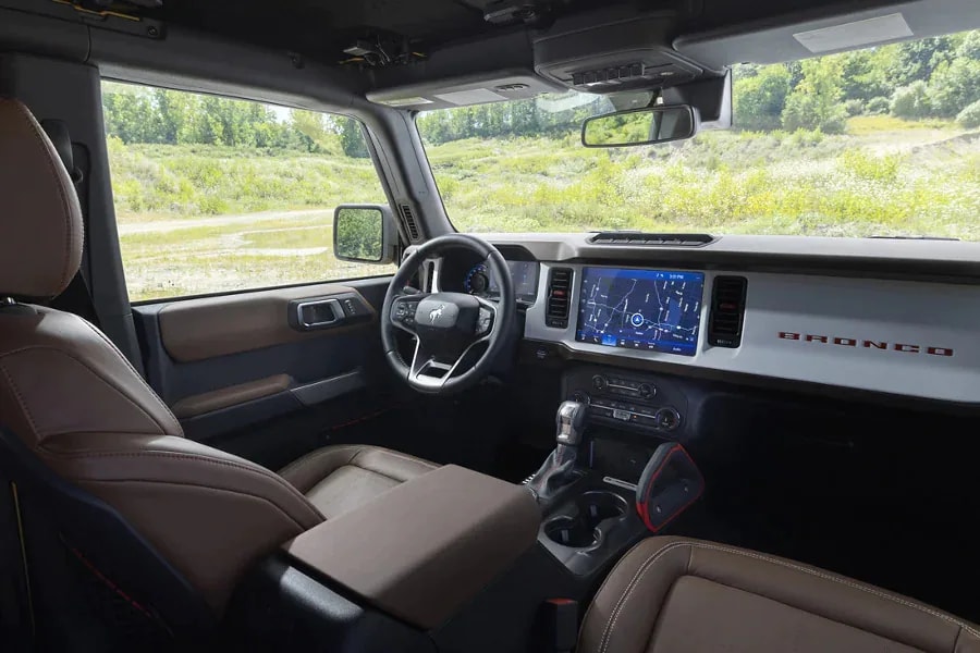 Another eye-catching highlight is the Race Red "FORD" lettering on the grille, matched with plaid cloth seats on the inside. For tech and convenience features, we can expect advanced characteristics like the Sasquatch® Package, which includes a H.O.S.S 2.0 system, 35-inch tires, and electronic locking axles.