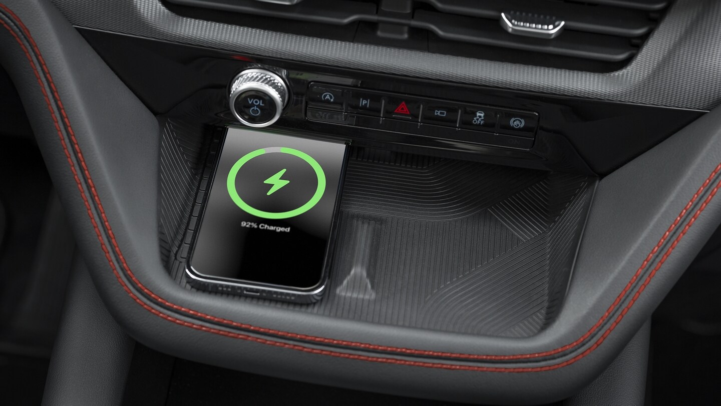 The available wireless charging pad can charge a smartphone or compatible device without plugging it in. Simply put the device on the pad and it charges automatically. For added convenience, there are charging ports located throughout the vehicle including: