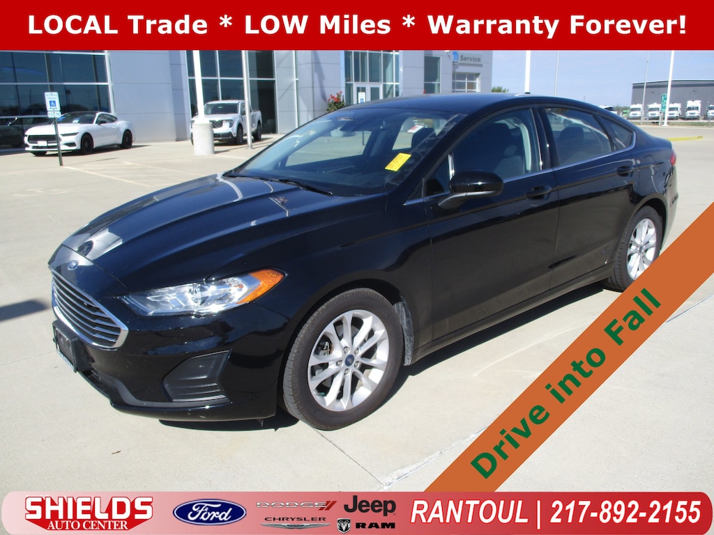 Snatch a deal on this 2020 Ford Fusion SE before someone else takes it home. Roomy yet easy-moving, its dependable Automatic transmission and its trusty Intercooled Turbo Regular Unleaded I-4 1.5 L/91 engine have lots of charm for an inexpensive price. It comes equipped with these options: Power Rear Windows, Power Door Locks w/Autolock Feature, Cruise Control w/Steering Wheel Controls, ABS And Driveline Traction Control, TRANSMISSION: 6-SPEED AUTOMATIC, FORD CO-PILOT360 ASSIST -inc: Voice-Activated Touchscreen Navigation System, pinch-to-zoom capability, SiriusXM Traffic and Travel Link, Adaptive Cruise Control w/Stop & Go, EQUIPMENT GROUP 150A, ENGINE: 1.5L ECOBOOST, EBONY, CLOTH FRONT BUCKET SEATS -inc: 10-way power driver seat w/2-way power lumbar (fore/aft, up/down w/recline, tilt), 4-way manual passenger seat (fore/aft w/recline) and 4-way front seat head restraints, and AGATE BLACK METALLIC. You've done your research, so stop by Shields Auto Center at 850 Broadmeadow Rd, Rantoul, IL 61866 this weekend to drive home in your new car!